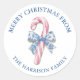 Blue Pink Chinoiserie Toile Candy Cane Christmas Classic Round Sticker