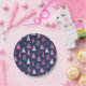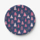 Blue & Pink Christmas Tree Pattern Paper Plate