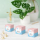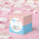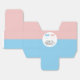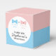 Blue and pink colour block gender reveal with bow and bow tie favour box. The design features blue and pink colour blocks and a white circle in the middle with a bow and a bow tie and your custom text.