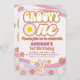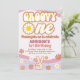 Blue Pink Daisies Peace Sign Groovy One Birthday Invitation
