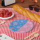 Funky dots design in blue and pink. Cool summer mood. Abstract mind. Modern and fresh.
