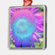 Blue pink funky retro sunflower photo metal tree decoration