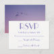 White and periwinkle text wedding RSVP paired with a photo of blue and pink ombre sunset with a few purple clouds.
