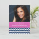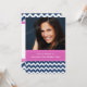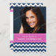 Custom Photo 30th Birthday party invitations in elegant and modern dark navy blue, bright fuchsia hot pink and white fun and casual chevron zigzags stripes pattern. Add your name, photo, and party details for a unique and stylish 30th birthday party invitation.