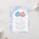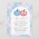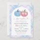 Blue Pink Preppy Gingham Pumpkin Gender Reveal Invitation