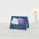 Beautiful bouquet featuring purple wisteria and bunches of white roses against a blue colour background. The pink colour greeting text uses an attractive script typography font. The flowers cover the front of this card which can be used as a thank you card, a birthday card, or any other card of your choice. Personalise it with your text and/or pictures to make it one-of-a-kind!