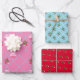 Wrap your Christmas holiday gifts with charming grand millennial style this season using these three wrapping paper sheets that feature a coordinating collection of patterns. One sheet features editable custom greeting and name text inside the pattern of scalloped sky blue arches with festive illustrated holly sprigs on a bright candy pink background. Another sheet of wrap has white scalloped arches and holly sprigs in a repeat pattern on periwinkle French blue. The last sheet uses the holly motif as a simple, small scale pattern on coordinating cherry red. This gift wrap sheet set is a seamless way to create an aesthetic gift experience with coordinated colours and patterns that work together while still being unique on their own.