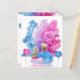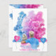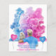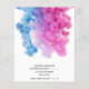 A budget baby shower or gender reveal invitation. On a white background the design consists of elegant blue and pink smoke, that contains the baby's surname followed by gender reveal within black typography text. A couple in pink and blue t-shirts are seen watching the smoke while surrounded by love heart shaped blue and pink balloons. Personalise by adding your full event and contact details to the front and back.