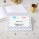 Blue and pink triangle pattern gender reveal with bow tie guest book. The design features a blue and pink triangles pattern and a white circle in the middle with a bow tie and your custom text.