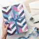 A marble-like chevron design made of white, blue, and pink zig zags. This is a very elegant design for chic ocassions.