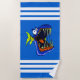 Blue Piranha Fish on Blue and White Striped Beach Towel