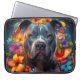 Blue Pitbull Dog with Flowers Laptop Bag