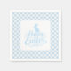 Party paper napkin is shown in the white cocktail size with a cute powder blue and white plaid Easter print.