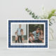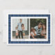 This festive plaid holiday card has space for two photos. It features the words "Love and Joy" and also has space for your name and the year. The back of the card has a matching blue plaid pattern.