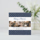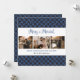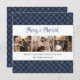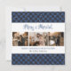 Elegant blue plaid photo merry and married Christmas cards featuring a snowy black and blue buffalo plaid background with 3 photos in the middle and a beautiful hand-lettered script title above. Easily personalise this blue plaid Christmas card with your images, text, and your family name.
