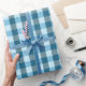 Cute light and dark blue plaid gift wrap. So cute for all occasions.