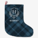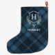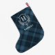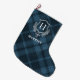 Blue Plaid Monogram Initial Tartan Large Christmas Stocking