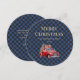 Blue Plaid Red Truck Snow Merry Christmas Card