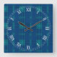 Blue Plaid Square Roman Numerals Clock