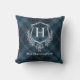 Blue Plaid Winter Monogram Crest Initial Cushion