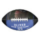 Custom Blue Player Name Number Team Photo Football. The text is black on a blue background with black tops. You can change any text on the football or erase it. A perfect gift for a football player, teammates, coach, your friends and family. Great keepsake to remember your favourite sport.