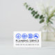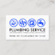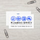 An all white cover features a blue plumbing tools icon design at the top of the card.  Below this is the business name "PLUMBING SERVICE" alongside a list of possible services and your phone contact. ; You can change the caption remarks to the list of services suit your own service needs.