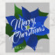 Blue Poinsettia wine label with black background and Merry Christmas saying and below the year and your family name which you can personalise. Blue and grey colour, with a simple and elegant look. Perfect for Christmas hostess gifts for the next Holiday party you are going to or to hand out to neighbours this holiday season.