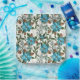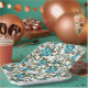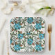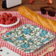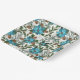 A Elegant Paper Plate Deigned In A Blue Poinsettia Flower Pattern With Pine Cones For The Holiday Dining