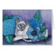 Original watercolor painting by Sandra Gale, featuring a blue point Siamese cat, surrounded by blue flowers on a pale purple background. Flowers are blue hydrangea, and blue poppies. Great design for cat lovers and those who especially like the Siamese breed. Perfect for bedroom wall art or framed with matching image. Matching watercolor painting of a chocolate point Siamese also available.