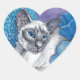Original watercolor painting by Sandra Gale, featuring a blue point Siamese cat, surrounded by blue flowers on a pale purple background. Flowers are blue hydrangea, and blue poppies. Great design for cat lovers and those who especially like the Siamese breed. Perfect for bedroom wall art or framed with matching image. Matching watercolor painting of a chocolate point Siamese also available in my EverIrisPrints store.