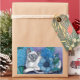 Original watercolor painting by Sandra Gale, featuring a blue point Siamese cat, surrounded by blue flowers on a pale purple background. Flowers are blue hydrangea, and blue poppies. Great design for cat lovers and those who especially like the Siamese breed. Perfect for bedroom wall art or framed with matching image. Matching watercolor painting of a chocolate point Siamese also available in my EverIrisPrints store.