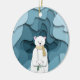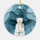 Adorable bear ornament with an illustration of a little polar bear with its protective mum by it on a gorgeous blue background. Great keepsake for your baby's first Christmas. The image looks like is in three dimensions but it's just a print. Illustrated and designed by Patricia Alvarez.