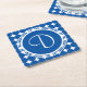 Blue Polka Dot Monogram Square Paper Coaster