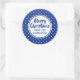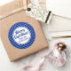 Sticker holiday gift tags with a blue polka dot background. The "Merry Christmas" greeting and who it is from can be changed.