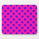 Blue polka dots on fuchsia mouse mat