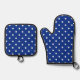 Blue Polka Dots Oven Mitt & Pot Holder Set