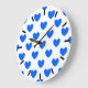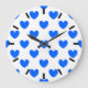 Blue polka hearts on white large clock