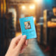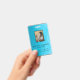 Modern blue gradient polygonal background and photo, id number and barcode
