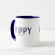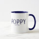 Poppy coffee mug design with established year featuring a blue stamped font set on a white background. Click customise to edit the background colour!. Visit our shop to view this mug in a large assortment of grandfather names.
