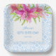 This beautifully designed paper plate features a stunning watercolor illustration of a pink lily flower and a blue Portuguese Azulejo ceramic tiles frame. You can easily customise the text and include the celebrant's age to make it even more personalised. Share the joy with your friends and family and make this milestone birthday one to remember!