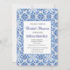 Invite guests to a charming and elegant celebration with this Portuguese Tiles Bridal Shower Invitation. Featuring traditional blue azulejo patterns inspired by classic Portuguese ceramics, this design brings a touch of old-world beauty and sophistication. Accented with modern calligraphy and soft watercolor textures, it’s the perfect invite for a Mediterranean, coastal, or destination-themed bridal shower. Personalise with your event details easily and make your special day unforgettable.