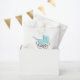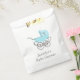 Sweet baby shower favour bag with a graphics of an old fashioned turquoise blue baby pram. Personalise the grey custom text for your baby shower event. Great for all your party favour needs.
