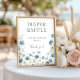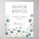 Blue Preppy Flowers Watercolor Diaper Raffle Sign