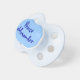 This personalised custom pacifier for baby boys says "Prince Alexander." It's darker letters on a blue background.