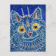 A fine art postcard featuring an abstract blue cat illustration by the English artist Louis Wain (1860-1939). Renowned for his illustrations, he is most celebrated for his depictions of animals and pastoral scenes, particularly his distinctive large-eyed cats full of character. This drawing is from his psychedelic period.