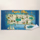 It's a fantastically colourful vintage postcard map of Puerto Rico repurposed on a beach towel!