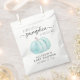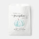 Cute baby boy shower thank you favour bag featuring a pastel blue watercolor of a pumpkin and "A Sweet Little Pumpkin Is On His Way" written in a mixture of soft grey typography and a stylish script with swashes.