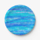 Blue, teal and purple paper plates for a birthday or baby shower.