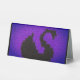 Image printed on table tent is from a photo of an original crocheted creation designed handmade and Copyright © by published designer Delores Chamblin. The picture of the unique handcrafted black swan silhouette is reproduced on the stand alone tent. The bluish hue is digital filter.