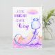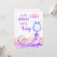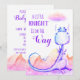 * A cute sweet Blue Purple Magenta Violet Dragon in front of a background of watercolor mountains and colourful cloud in the sky Baby Baby Boy or Girl Shower Invitation.